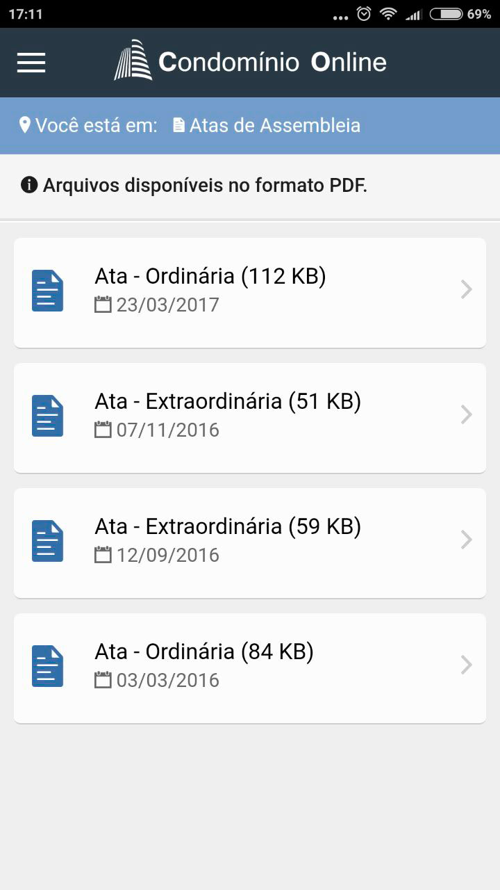 Disponibilização de todas as atas de assembleia realizadas pela Solução no Condomínio após o registro das mesmas.